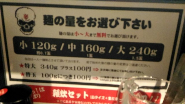 麺の量を無料で小(0.7玉)・中(1玉)・大(1.5玉)と三段階選べますが、様子見のため中を選択。
