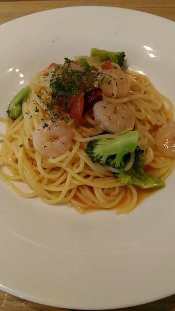 ペペロンチーノはエビがぷりっぷり。ブロッコリーもしっかりした大きさで食感を楽しみつつ食べられます。パスタはやや固めかな?でも野菜と一緒に食べてもとても美味しかったです。