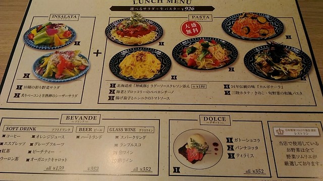 ランチでは2種類のサラダと5種類のパスタからそれぞれ1品選べます。