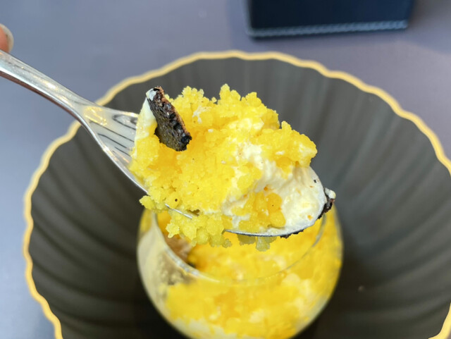 泡がムース、水がシャーベット、焦げが皮の部分。