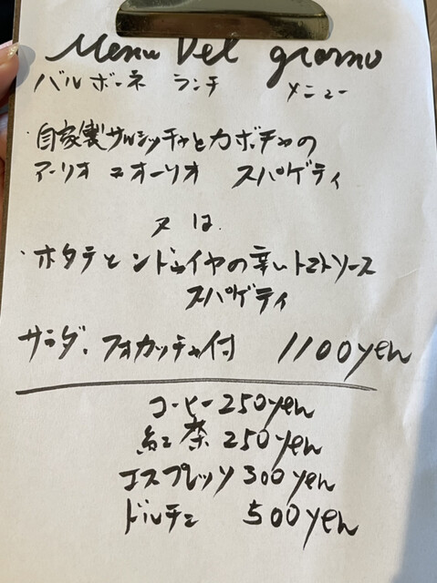最後のお休みだから、夜はお家でまったりしたい、でもランチくらい美味しいもの食べたいとなり、大好きなバルボーネさんに訪問。
