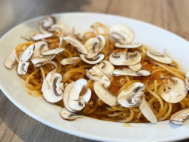 ・長谷川農園のマッシュルームと自家製サルシッチャ トマトソーススパゲティ