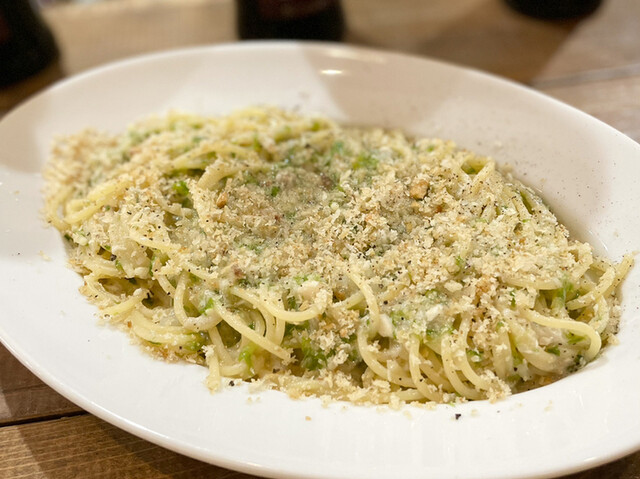 この日のパスタも、わたしの大好きなこのカリカリとした食感のやつがのってる。