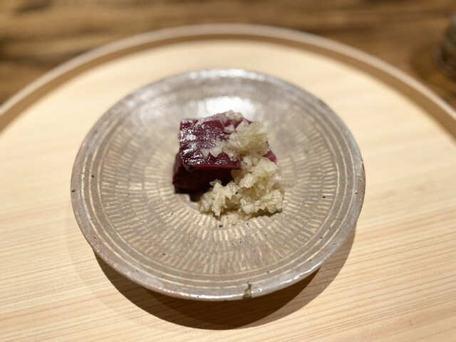 そして新蓮根の優しい甘みとみずみずしさを感じられるお団子と優しいお出汁に、自家製唐墨がいい塩梅。いやーこれ美味!