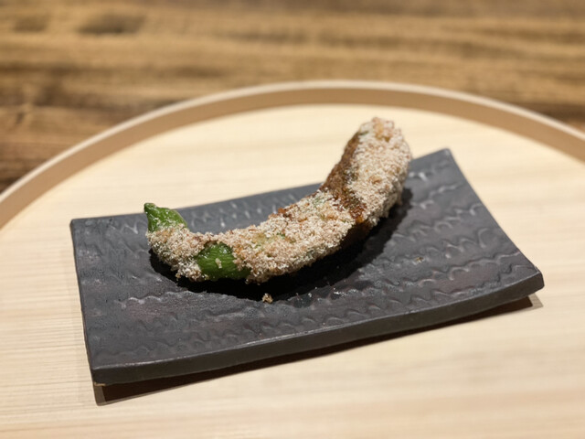 ・焼津産鯵の棒鮨 牛蒡の唐揚げ