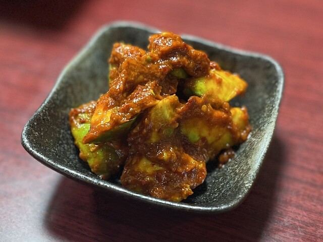 この日もアボカドキムチとチャンジャからかなり美味しい。辛すぎず、マイルドで醬が癖になる味付け。