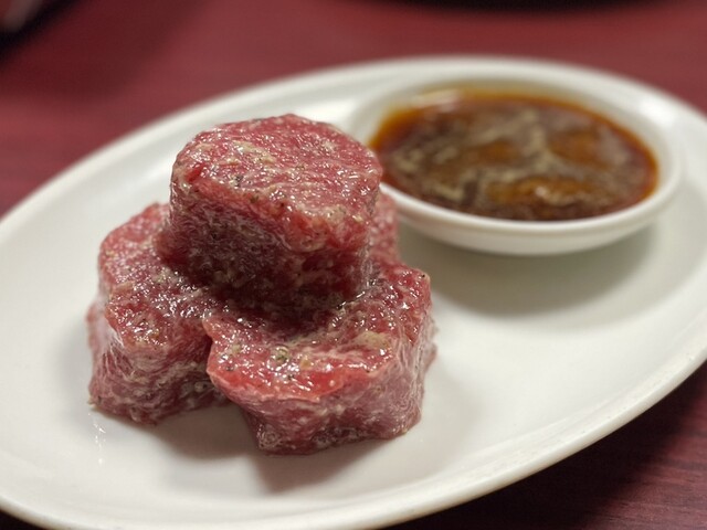 そして、他の焼肉屋には見かけない「赤身角切り」。
