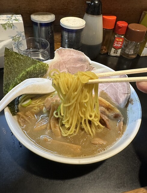 手揉み麺に変更で背脂追加!
