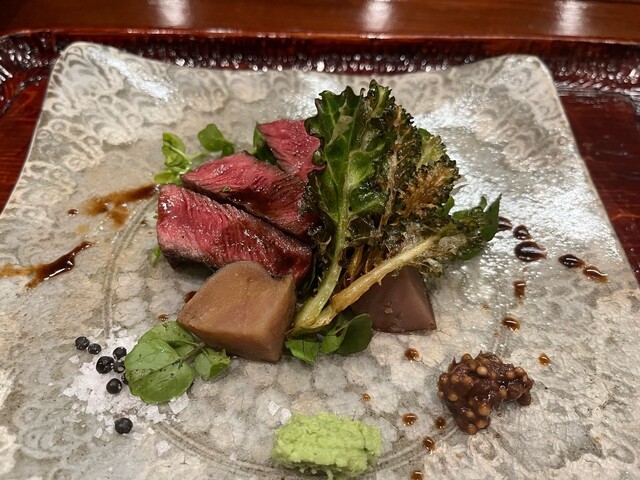 気さくな大将が、おそらくオーナーから指示されている予算内の食材で楽しませてくれる数々の和食。コスパが高く京都で食べなくてもここにきてゆっくり楽しもうと思わせるお店。最後のコーヒーは大将に入れてもらって目の前で炭火で煎って挽いてドリップしてくださる格別の逸品で、喫茶店でも飲めない味わいです。今回はアイスで贅沢に楽しませていただきました。