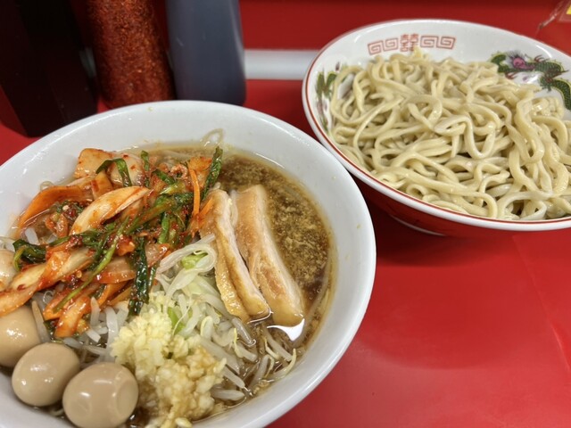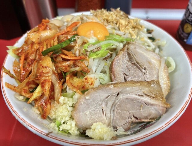 ラーメン(950円)+つけ変更(100円)+豚増し(250円)+SUPERキムチ(130円)、ニンニクコール