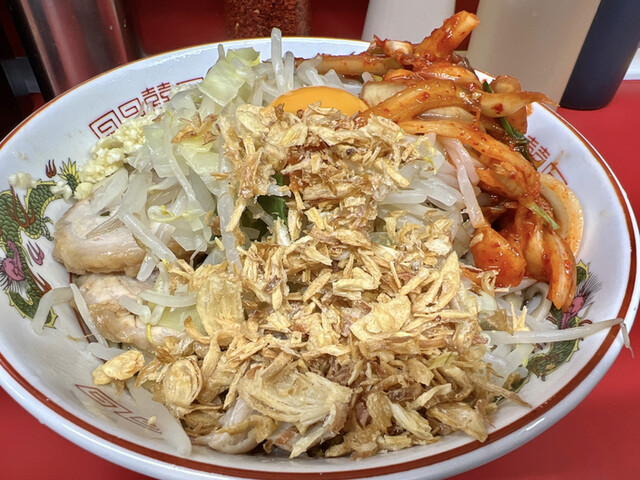 ラーメン(850円)+汁なし(100円)+SUPERキムチ(100円)、ニンニク・生姜