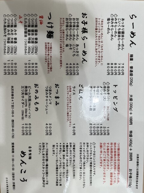 めんこう米沢、置賜、西米沢/ラーメン、つけ麺、中華料理