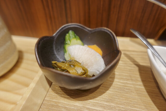 しばらくすると、とんかつのタレ、カラシ、塩、漬物が乗ったプレートが到着。これから提供されるとんかつにワクワクしてしまいます。