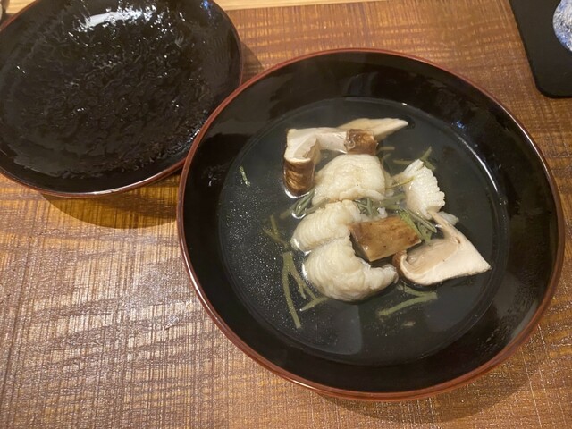 ◾️椀物 鱧と松茸。名残鱧は滋味深く松茸も素晴らしい。王道の料理も丁寧に料理され思わず唸る。