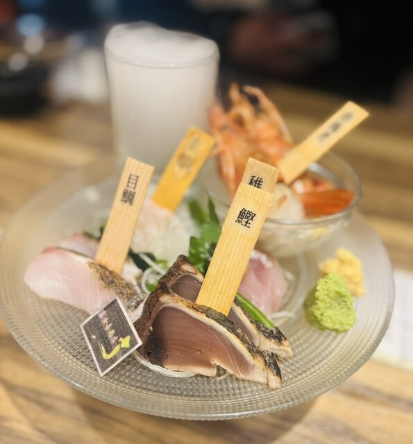 日本酒プレミアムの120分飲み放題と宝石箱〜富士喜商店お造り盛り合わせ〜を注文!