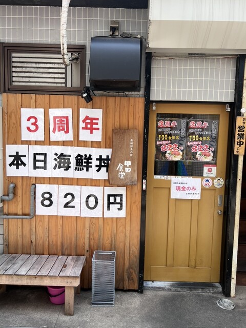 甲田食堂オープン3周年という事で海鮮丼が820円先着100名様となっていました。12:30だったので諦めながら前を通るとまだあるらしい。それは当然行くでしょう。