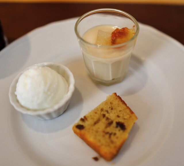 まずは前菜の登場です。全て手作りとの事です。鯖のソースが少し辛味と酸味があって美味しい。フォカッチャにつけても最高に美味しい。次にパスタの登場です。220円追加して、牛肉ラグーのフィットチーネに変更して220円追加して大盛りにしました。よく煮込まれた牛肉がたっぷり入ってて美味しい。次に登場はコースの魚料理、帆立とエビと鯛のムースが蔓紫の葉に包まれています。トマトベースのソースと合わさるとなんとも言えない美味しさです。次にコースの肉料理、牛肉のグリルに季節の野菜を添えて(名前はイメージです)。肉の火入れが絶妙です。バルサミコ酢のソースも美味しい。最後にドルチェ盛り合わせです。塩ミルクジェラード。栗のパンケーキ、紅茶のパンナコッタ。ヤバいです。どれも美味しい。10枚目以降の写真は連れのBコースの料理です。