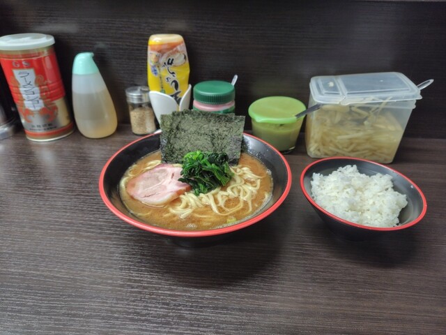 ラーメン大盛り(1,100円)と小ライス(120円)を注文しました。
