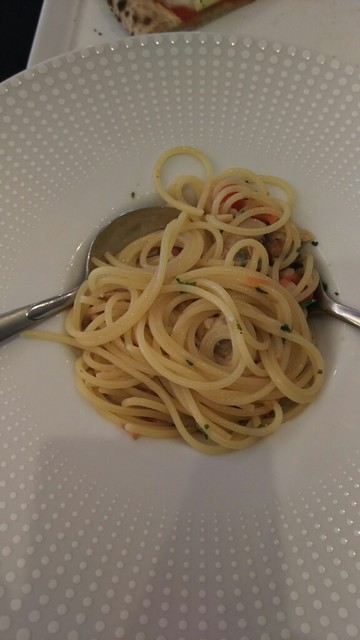 ランチコースの前菜は一品ずつ説明して頂き、パスタは貝のパスタ、オイルベースで、塩加減、ニンニクの風味が美味しく、パスタの硬さも好みでした。