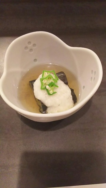 まず、最初に出てきた小鉢のお出汁がすごくおいしかった(´ω`)チーズじゃがいももモチモチトロトロ、かかってる餡がまたおいしかった