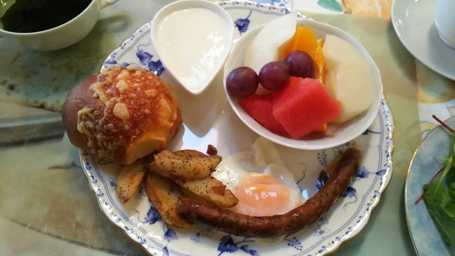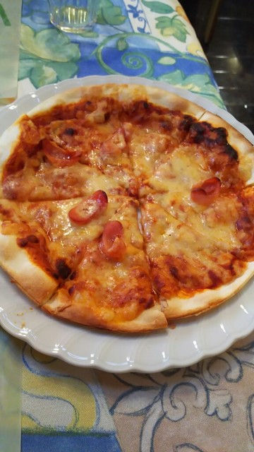 朝食も二人に一枚づつピザのサービスもあり、手作りウィンナーはハーブの香りがたちおいしかったです。