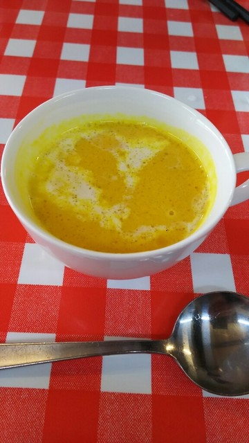 スープはかぼちゃのポタージュ‼またこれが甘くて美味しい。量もしっかりある!