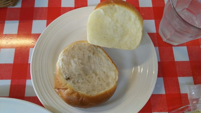 パンはあたたかくふわふわでプレーンとクルミのパン。いくらでも食べれそう!