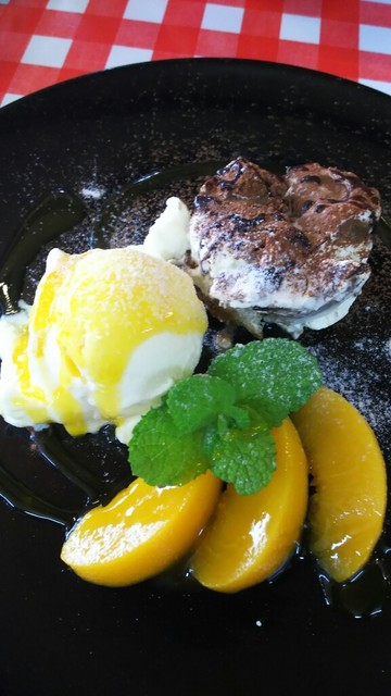 デザートもティラミスにバニラアイス(マンゴーソース)、桃缶トッピングでボリュームありでした‼