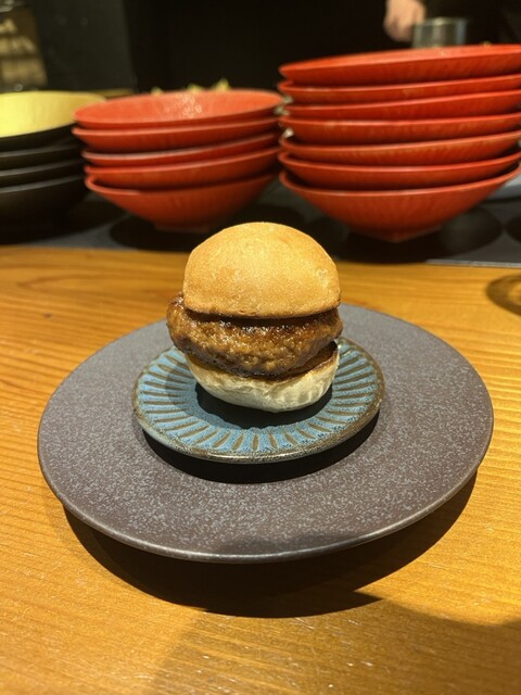 あまりの美味しさに、追加でスジ肉の卵焼き(?)とハンバーガーもオーダー。