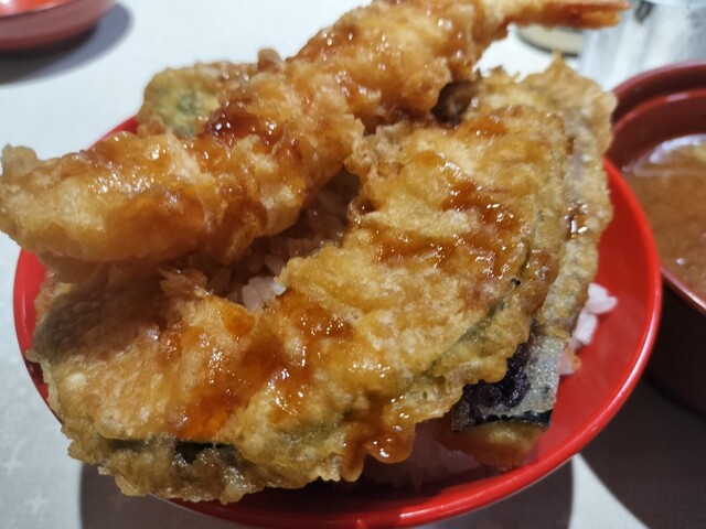 巨大天婦羅にご飯大盛で900円弱、とコスパ最強です。