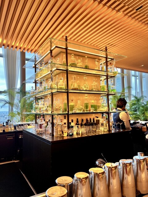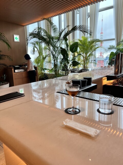 映え:照明とグラスの陰影/東京タワーの借景