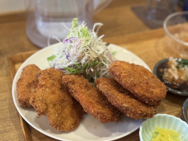会議があり、ちょうど昼前に県庁近くに来ることがあったので、再来予定だったこちらに同僚と来店。11時45分頃に店に到着しましたが、既に満席で待ちの状態。とはいえ、ちょうど外待ちの人が中に入って行ったので、1番最初の待ちだったので、入口にある紙に名前を書いて、しばらく待つことに。待っている間に、メニューを見てると、先に注文オーダーを取られたので、以前は売り切れていたチキンカツ定食にして、おかずが大盛りにできるようだったので、チキンカツ定食おかず大盛りに。