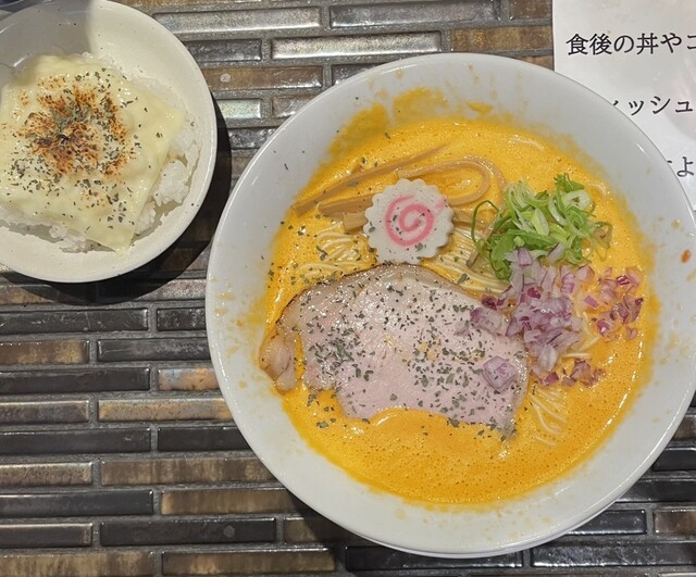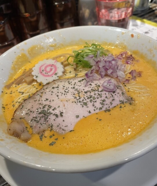 はまぐり出汁にニンニク、トマトなクリーミーなラーメン。