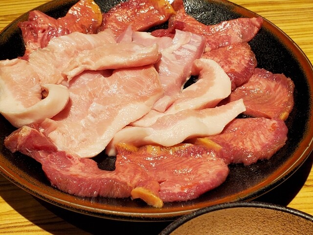 先にサービス品(トントロ塩と牛タンとローストビーフ)が突出しのノリで提供されます。 ※サービス品は追加注文できません