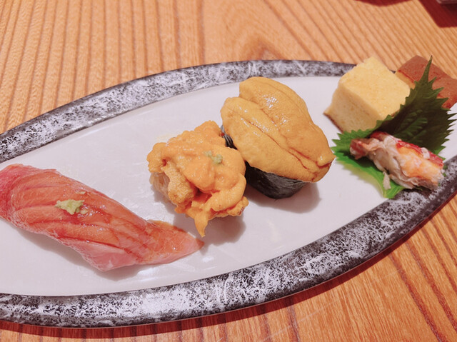 お寿司屋さんはカウンターで食べたいところだけど、話をする目的もあったのでテーブル席でのコースでしたが、出される厳選食材やひと皿ひと皿の感動の味にただただ圧倒されるひとときに^ ^