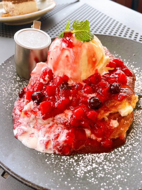軽くお茶をするつもりが、美味しそうなパンケーキがありついつい注文してしまいました。