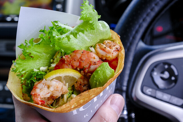 数年前からいつもこちらの自販機で深夜に手羽先を購入しておりましたが、インスタを見て「おやおや…クレープが?」何かのついでに行ってみっかね、という事で、開店ほぼ12時ジャスト過ぎに到着。クレープが今回は目当てで、子供と一緒に「時間限定の飯系クレープ」を注文、ついでに手羽先も二つ注文☆すでに数台別のお客様がお待ちの状態で、人気店というのが伺えます。息子に「一口だけお願い」って言っても一口ももくれませんでした。…ケチw、珈琲との相性も、サイダーとの相性も抜群、もちろん、手羽先は中毒性があるおいしさでビールとの相性は抜群☆次回はバタシュガーと手羽先とお願いしようかな。