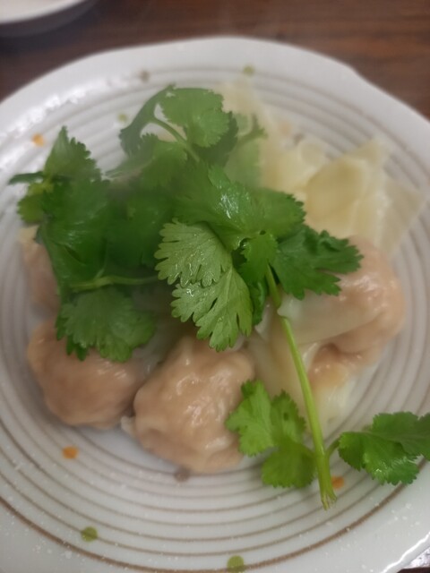 今年、初ラーメンは支那ソバかづ屋へ。開店15分前着で私と息子は5.6番目。ここは私が首都圏で、通算訪問回数が恐らくNo.2でしょう。ちなみに訪問回数はNo.1は横浜くじら軒でしょう。…今日はまだお正月気分で、中瓶ビールをオーダーし、私は焼餃子、皿ワンタン、支那ソバ大盛麺硬めを、息子は餃子定食で、醤肉飯に変更、ワンタンスープに変更でオーダー。息子はかづ屋の餃子が大好物なので、私のを3個上げた。まずは中瓶ビールと餃子定食のキャベツ漬けが着た。キャベツ漬けは少し酸味の効いたもので、息子は苦手なので毎度、私がビールの摘みで食べる。続いて皿ワンタンと焼餃子が着た。これが超旨い!ワンタンも餃子も、中の餡がギッシリ詰まってて、ワンタンの皮はもちもち、餃子はカリッカリに焼いてある。旨さを堪能してたら、支那ソバ大盛麺硬めが着丼。自家製中細麺が、淡麗系の魚介の効いたスープと合う。チャーシューはオーブンで焼いた感じのチャーシュー、メンマと具材も旨い!スープの終盤に揚げネギを投入して、コクが増して更に旨い!年が明けても、やはり旨かった。御馳走様でした。