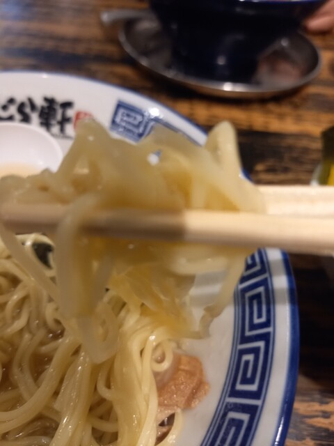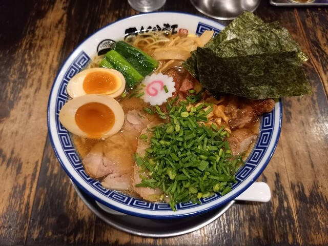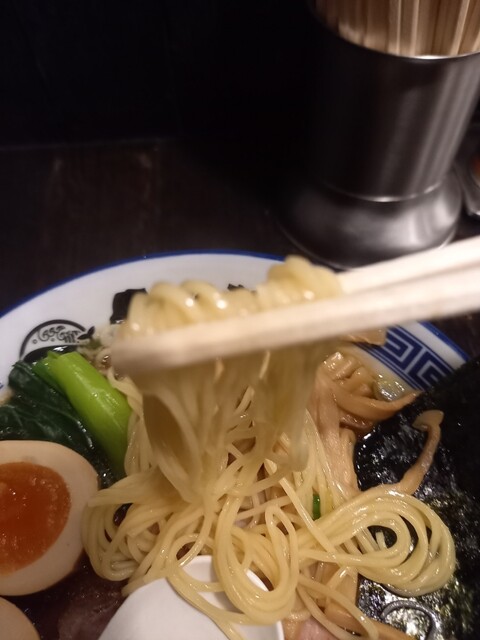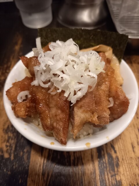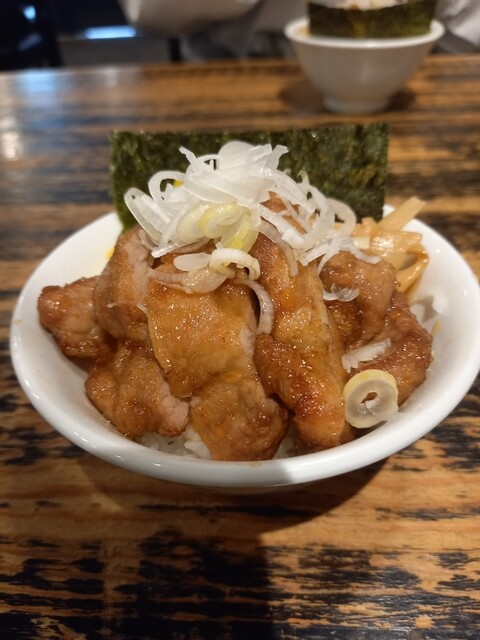 今日は私は有休で、息子はテスト終了で早く帰ってきたから、車でくじら軒へ。店主とは親しくさせてもらってますが、私は3ヶ月ぶりの訪問。店舗裏側の駐車場に4台停められるが、満車で5.6分出庫待ちし、駐車してから店舗へ。そこそこ席は埋まっていたが、食券を購入し、すんなり着席。私は塩らーめん大盛麺硬め+平日限定の、ミニくじら飯を、息子は薄口醤油らーめん大盛+ミニくじら飯をオーダー。平日は滅多に行けないから、ミニくじら飯をオーダー。約7.8分で着丼。昆布、煮干、鶏がら等の優しい淡麗系スープは、飽きない味で塩ダレと合う。薄口醤油も濃口醤油(支那そば)もかなり旨いが、久々の塩も旨いな。ミニくじら飯は、御飯にミニパーコーが載っていて、サクサクカリカリジューシーな、醤油味の豚肉の唐揚げ。しっかりした味付けで、全く衣が剥がれない。決して駅近では無い立地ながら、客足は途絶えない。神奈川淡麗系のパイオニアの味わい。中野青葉、新宿武蔵と同じ、96年組だから、来年で30周年です。これからも40周年、50周年と、末永く頑張って欲しいです。御馳走様でした。