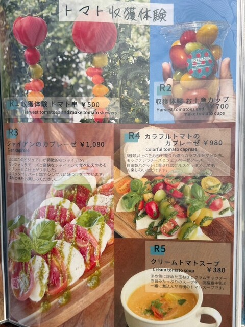 カフェはトマトハウスの横で採れたてのトマト料理やドリンクがたくさん