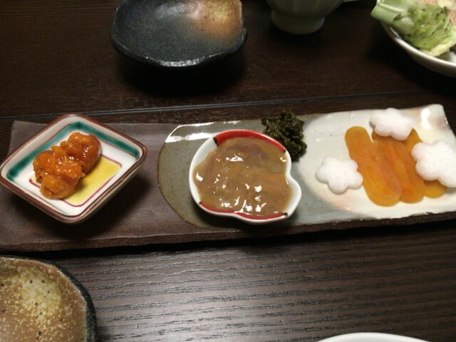 うな重の前に、珍味三点盛り、ピーナッツ豆腐、ナスの浅漬け、肝焼き、肝わさを頂き、日本酒もたーっぷり頂きました。