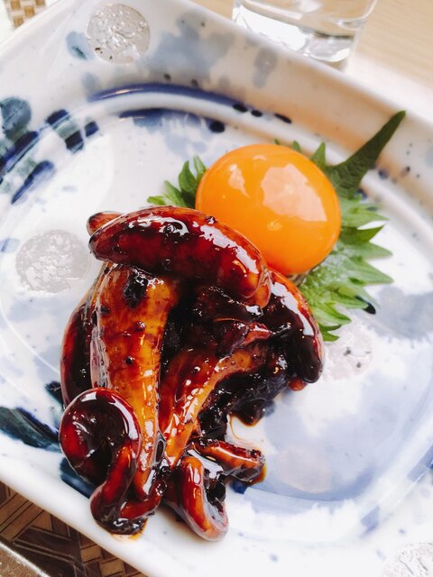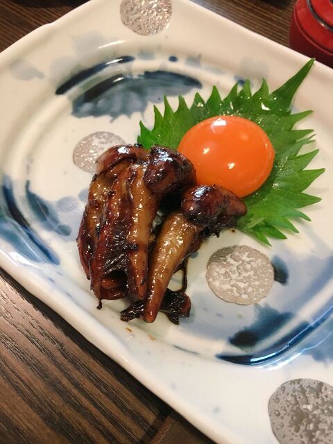 タレ焼きはこちらながらの黄身につけるスタイル。