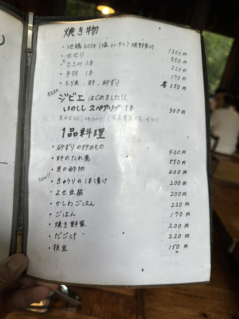 久しぶりの来店で、まずは、メニューを見て、生ビールと地鶏を注文。