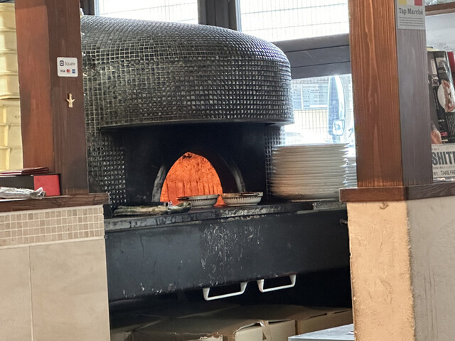 九州であっても寒い日なので、石油ストーブの暖がピザ釜近くにあります。