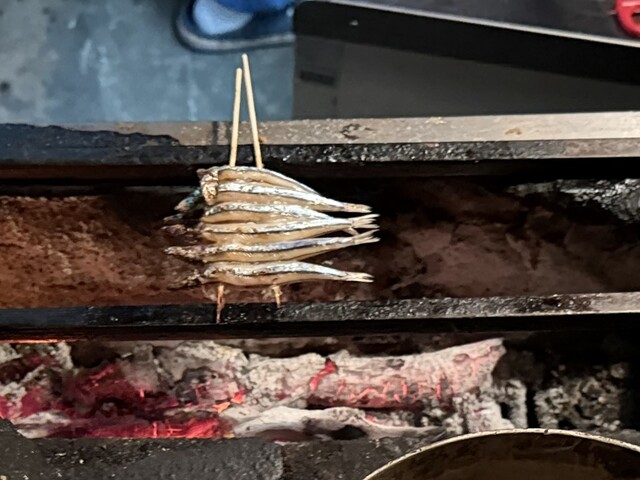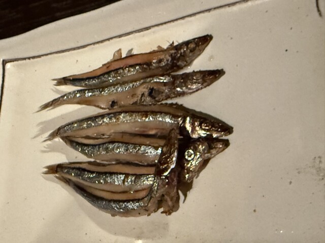 同じようにこのキビナゴも、焦げている部分をハサミで切りながら焼いてあり、自分の口の中に入る時は、同様の美味しさを感じます。
