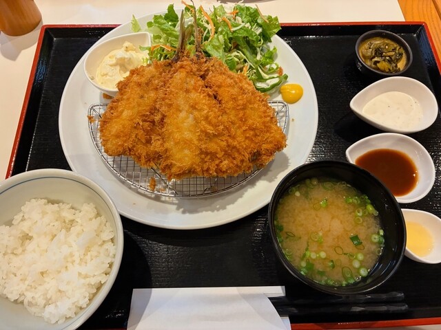 アジフライ定食ご飯少なめでオーダー