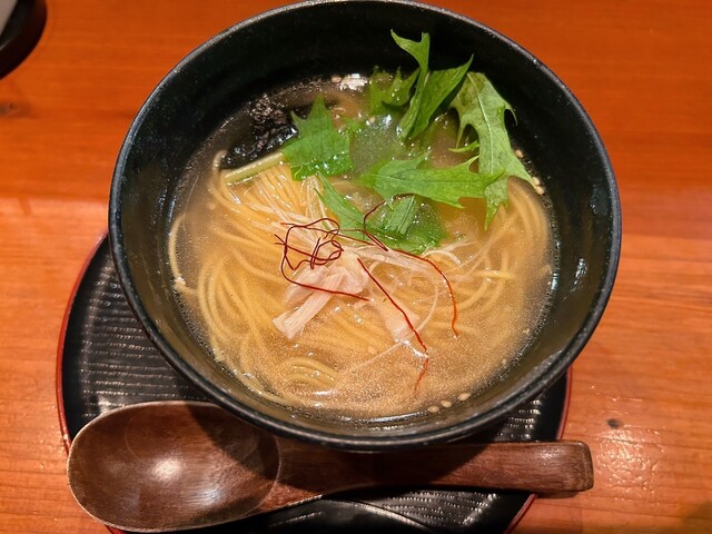 ほっとする鶏出汁蕎麦で〆!プチプチとした食感が楽しい