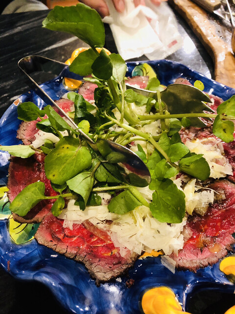 全部うまい。特に鰹節のように薄いチーズがかかっている和牛カルパッチョは絶品。