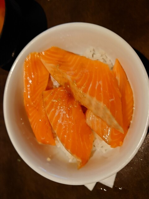 サーモンが厚くて美味かったので……サーモン丼にしてみた♪やぱ丼はんまいね(>ω<)♪