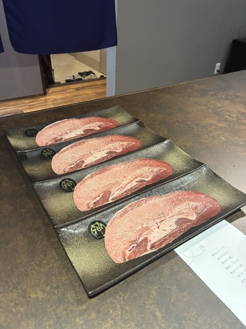 Instagramから予約して4人で訪問しました。山科駅から歩いて10分程度のところにあります。1日1組限定のフルアテンドのお店です。こだわりの肉一品料理から焼肉まで楽しめます。